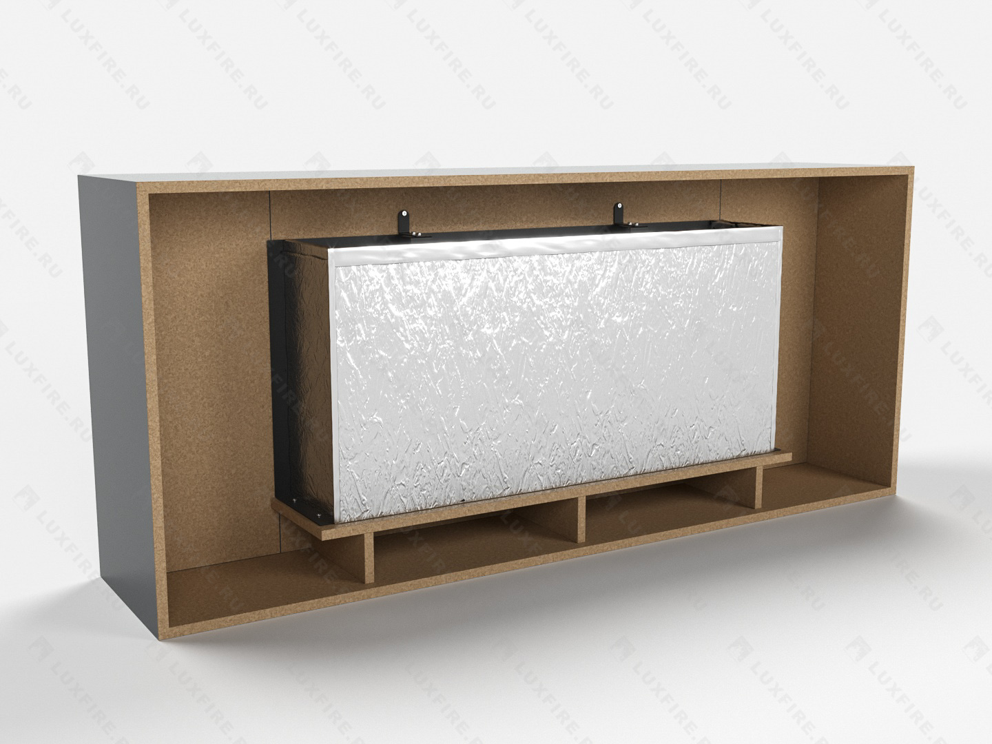 Представляет собой сборную окрашенную конструкцию из МДФ c портальным биокамином Lux Fire "Фаер Бокс 1-42"