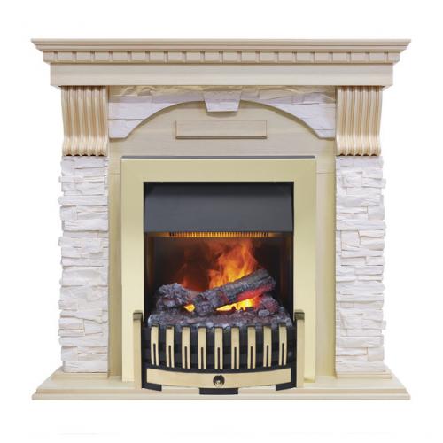 Каминокомплект «Dublin» от производителя Dimplex оборудован современным паровым очагом «Danville Brass», в конструкции которого реализована инновационная система имитации пламени Opti-Myst. Изделие имеет классическую конструкцию, а сочетание расцветок в его оформлении делает уместной установку не только в классических, но и романтических интерьерах. Площадь помещения для установки предлагаемого камина особо не важна, что обусловлено его небольшими размерами и использованием камня в отделке. Последнее делает его более массивным.
